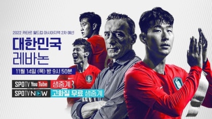 대한민국 vs 레바논 독점생중계. 시간은 오후 8시 부터 시작되며 티비엔 티빙 쿠팡플레이에서 시청이 가능합니다. 2022 카타르 월드컵으로 향하는 아시아지역 2차예선.