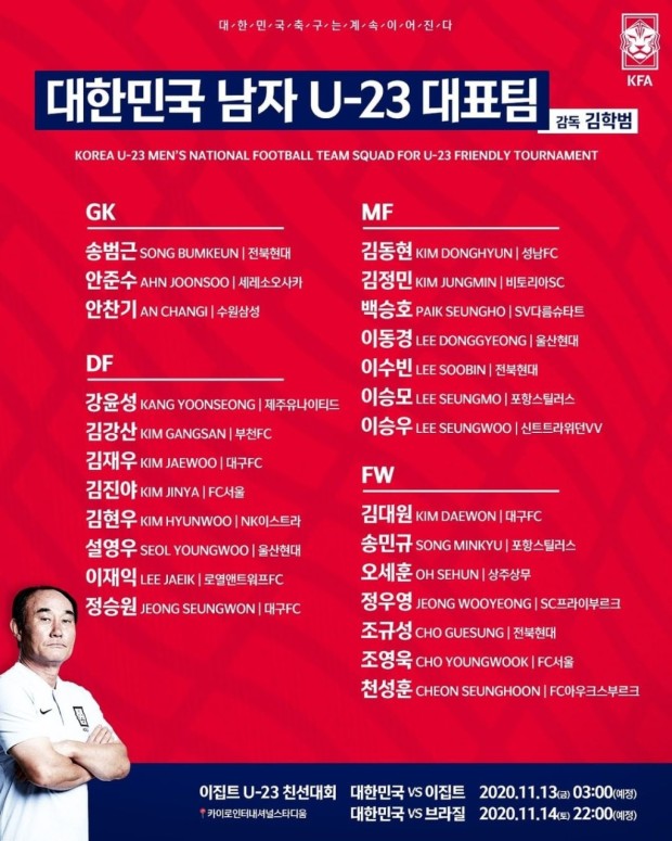 대한민국 U-23 축구 국가대표팀 일정, 11월 A매치 카타르 멕시코전 손흥민 이강인 해외파포함 한국축구국가대표팀 일정 명단 오스트레일리아 원정 Feat 대한민국 U 23 이집트친선대회 호드리구포함 브라질전 네이버 블로그