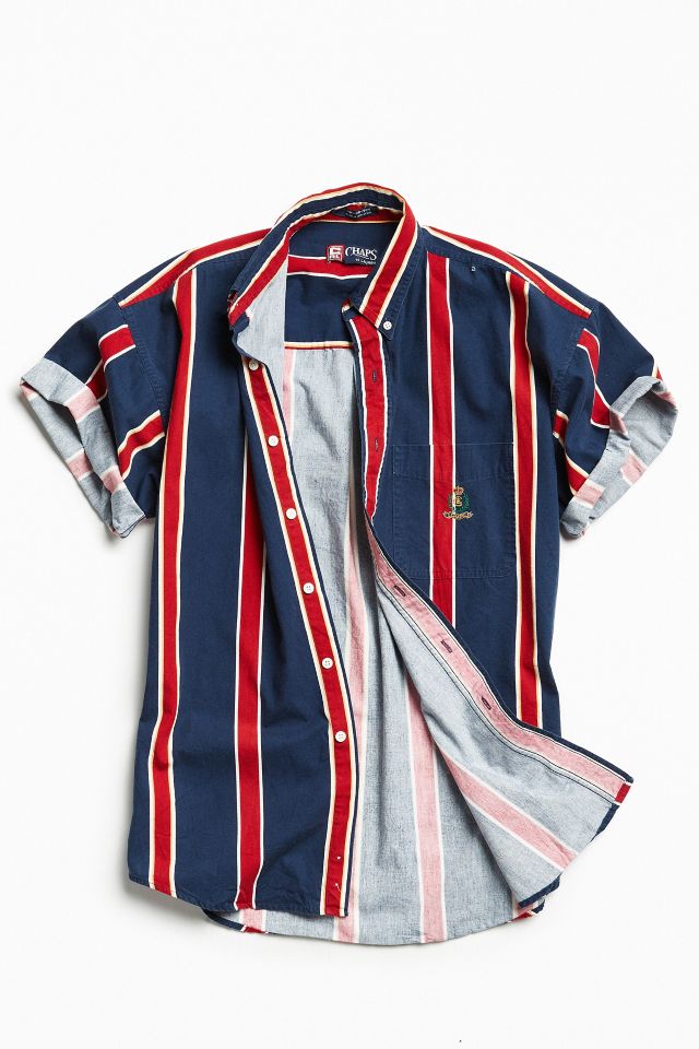 Vintage 90s Vertical Stripe Short Sleeve Button Down Shirt Urban Outfitters