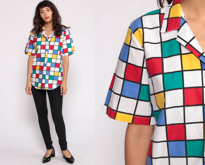 Color Block Shirt 90s Button Up Blouse Boho Shirt Checkered Shirt 80s Short Sleeve Vintage From Shop Exile Of Los Angeles Ca Attic